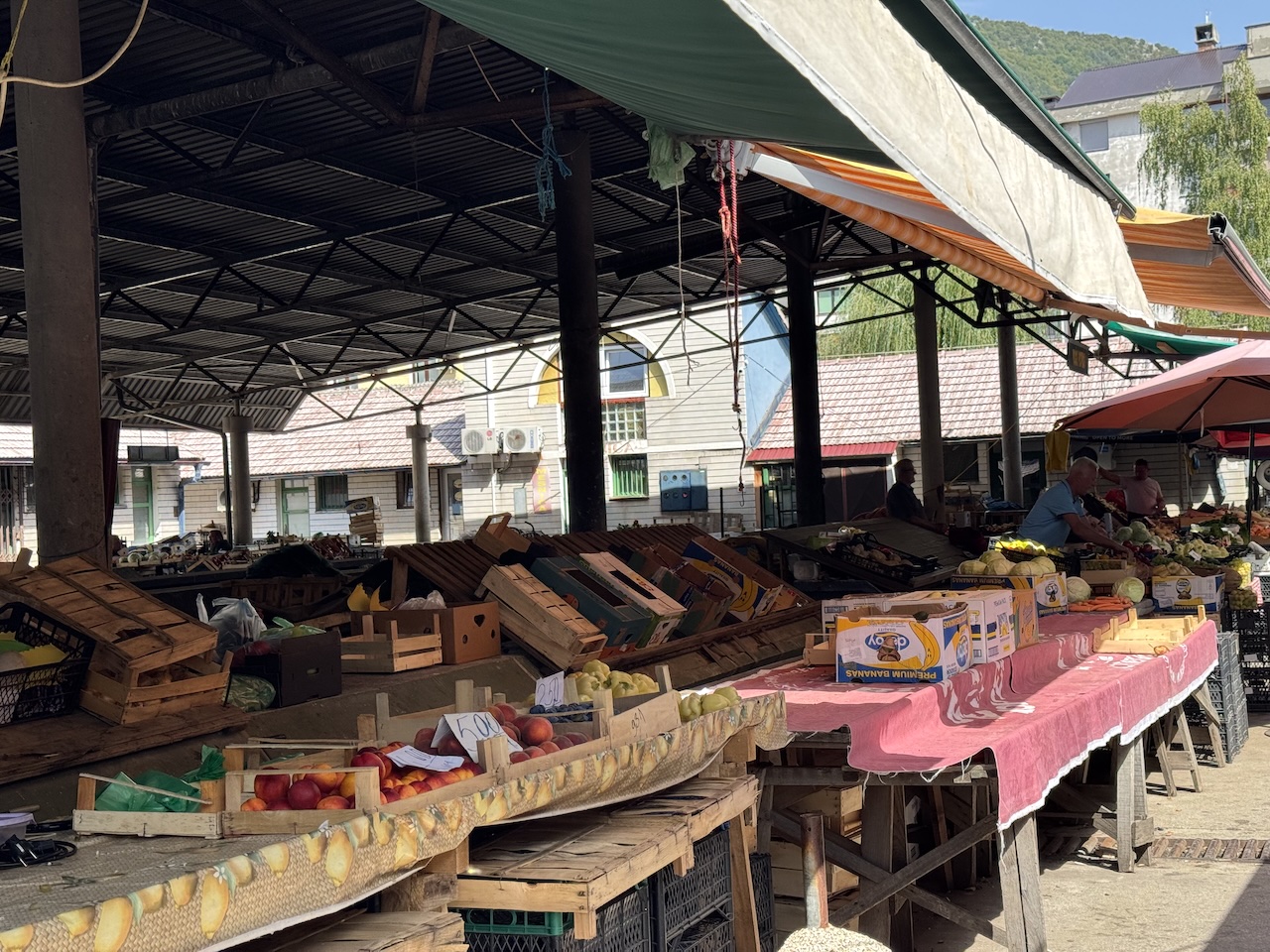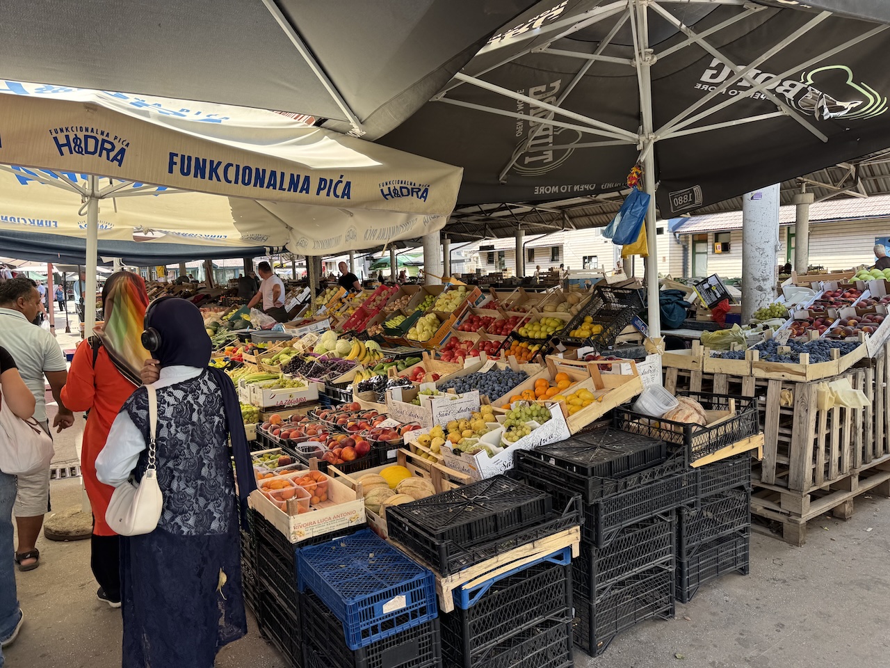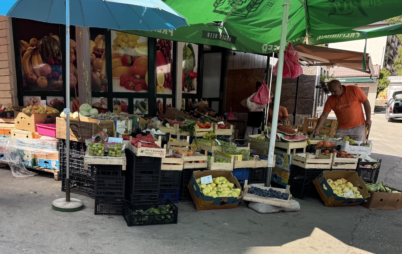 Prodavači nude domaće i uvozne proizvode, a najviše pažnje privlače lubenice, grožđe, breskve i šljive koje su u punoj sezoni. Na tezgama se mogu pronaći i paradajz, paprika, krastavci, kupus, mrkva, peršun i celer, kao i razne vrste začinskog bilja.