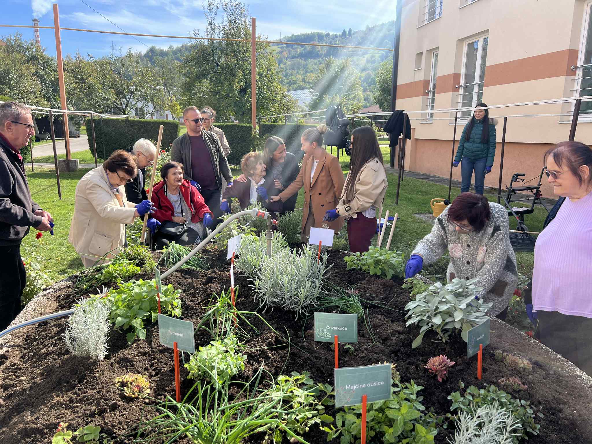 Aktivnost je realizirana u dvorištu doma u Travniku, uz podršku osoblja i korisnika, a atmosfera je bila ispunjena zajedništvom, razgovorom i osmijesima. Učesnici u sadnji istakli su kako im je zadovoljstvo bilo doprinositi projektu koji spaja ekologiju, brigu o zdravlju i društvenu solidarnost.