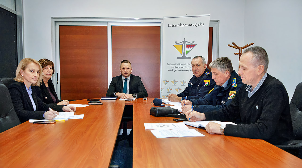 U Uredu glavnog kantonalnog tužioca održan je sastanak Operativnog foruma Kantonalnog tužilaštva Srednjobosanskog kantona i Ministarstva unutrašnjih poslova Srednjobosanskog kantona na kojem su prisustvovali glavni kantonalni tužilac mr. sci. Šemsudin Fuško, zamjenica glavnog kantonalnog tužioca Nevenka Čorić, policijski komesar Ministarstva unutrašnjih poslova Srednjobosanskog kantona Ibrahim Klisura, načelnik odjela za uniformisanu policiju Kristijan Suknjov, te načelnik sektora krim. policije po ovlaštenju policijskog komesara Nihad Jašarević.