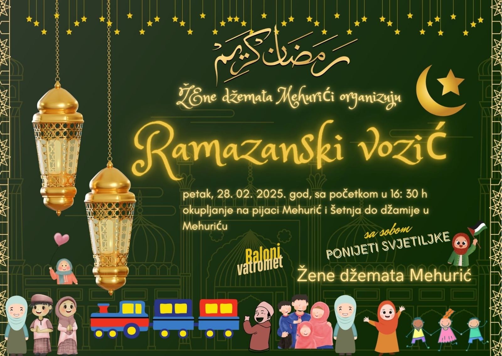 Prijave nisu potrebne, a sva djeca su dobrodošla. Žene džemata Mehurići pozivaju sve mališane i njihove porodice da zajedno osjete ljepotu Ramazana i toplinu zajedništva.