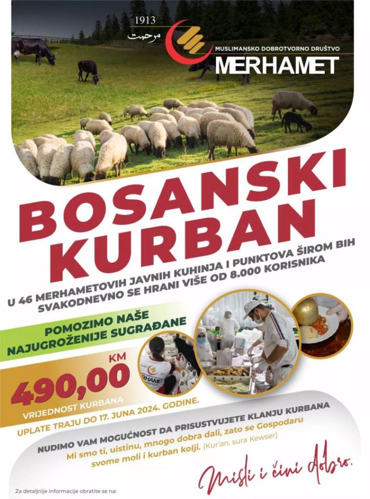 “Merhamet” će primati i donacije za nabavku kurbana iz Mekke i Australije. Akcija traje do 14. juna 2024. godine.