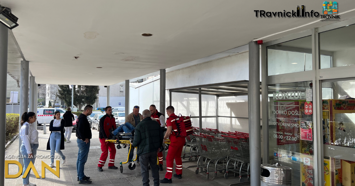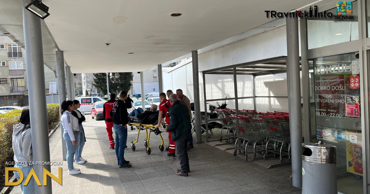 Danas oko 10 sati na prostoru ispred Konzuma, starijem čovjeku pozlilo je i srušio se na pod.