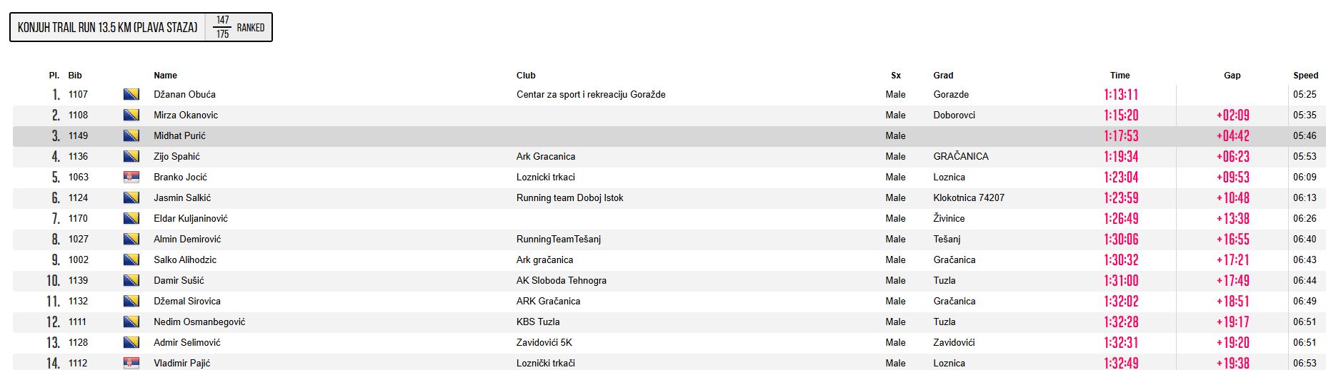 Među brojnim učesnicima iz čak deset zemalja, svoje mjesto na pobjedničkom postolju izborio je i Travničanin Midhat Purić – Mido, koji je u utrci „Konjuh Trail Run 13.5 km“ (plava staza) osvojio sjajno treće mjesto.