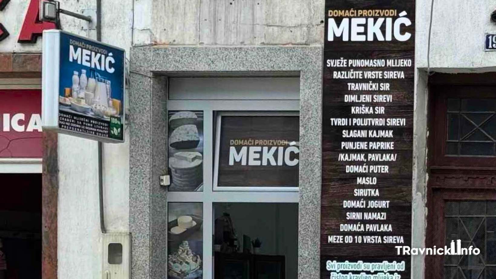 Trgovina “Domaći proizvodi Mekić” smještena je u Bosanskoj ulici, u blizini restorana Tarabovac, a radi svakim radnim danom od 08:00 do 17:00 sati. U njihovoj ponudi nalaze se visokokvalitetni domaći mliječni proizvodi, uključujući različite vrste sireva, slagani kajmak, punjene paprike i mnoge druge tradicionalne specijalitete pripremljene prema receptima koji se prenose generacijama.
